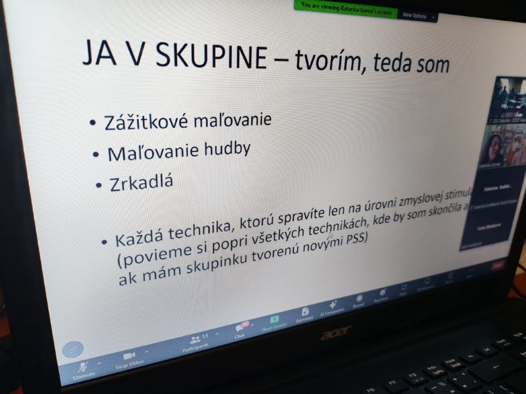 Dňa 23. 03. 2026 sa pracovníci ISR – ZSS – Salustia zúčastnili online workshopu zameraného na aktivizáciu seniorov prostredníctvom arteterapie. Cieľom školiteliek bolo priblížiť nám jednotlivé techniky, ukázať ich praktické využitie a predstaviť možnosti kvalitnej spolupráce so seniormi počas arteterapeutických aktivít.