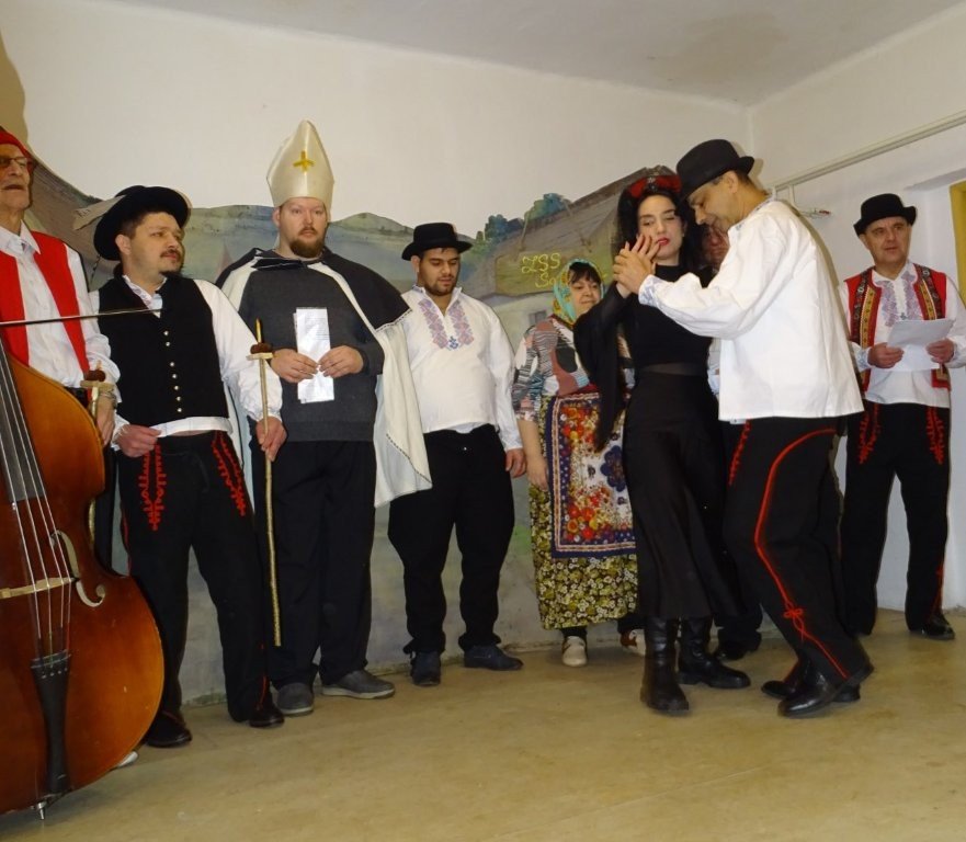Sprievod masiek začínal v Centre rozvoja pracovných zručností, odkiaľ sa za zvukov ľudovej hudby a spevu pohol fašiangový sprievod, ktorý navštívil všetky ubytovacie domy a kancelárie zamestnancov, aby ich pozval na kultúrne vystúpenie a fašiangovú veselicu. Sprievod sa postupne zväčšoval, keď sa k nemu z ubytovacích domov pridávali ďalší a ďalší prijímatelia sociálnej služby v maskách i bez nich. Nakoniec sme sa všetci znovu stretli v Centre rozvoja pracovných zručností, kde pre nás inštruktori sociálnej rehabilitácie z CRPZ spolu s prijímateľmi sociálnej služby pripravili kultúrne predstavenie s názvom „Pochovávanie basy“ - paródia na skutočný pohreb, kde basa predstavuje hudbu a jej pochovanie zákaz veselenia sa počas pôstneho obdobia. Predstavenie sa prijímateľom sociálnej služby i zamestnancom veľmi páčilo, čo ocenili búrlivým potleskom, urobili sme si spoločnú fotku, veselica a hodovanie sa mohlo začať. Do tanca nám zahral DJ Števo a chutné špekáčiky s cibuľkou nám pripravili inštruktori sociálnej rehabilitácie. Tancovalo sa a jedlo až kým neboli všetci unavení, ale v tej najlepšej nálade s prísľubom, že o rok si to zopakujeme.