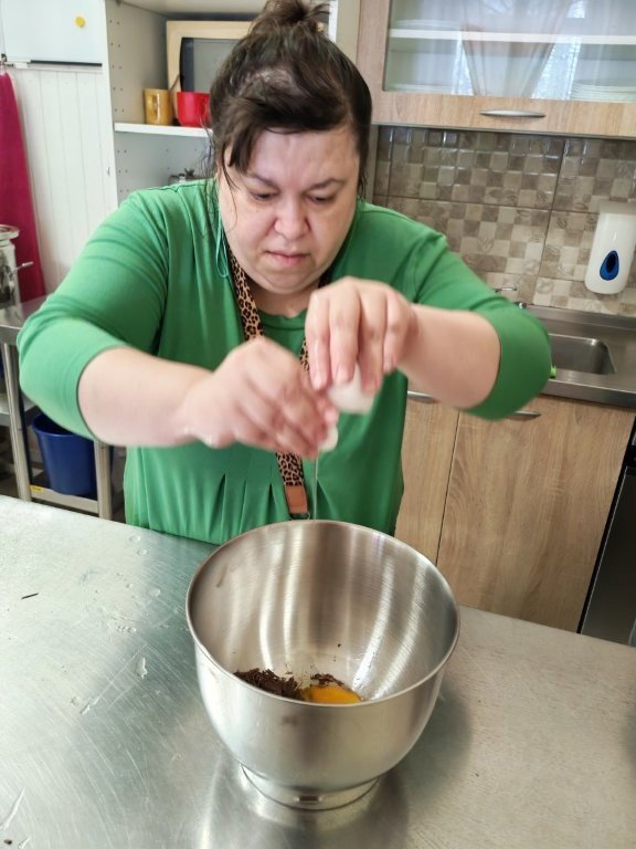 Veľkú radosť nám urobila aj návšteva – prišla nám pomôcť PSS Janka z UD Brezy, ktorá sa hneď aktívne zapojila do pečenia. Jej ochota, pokojný prístup a dobrá nálada boli pre všetkých príjemným obohatením. Spoločne sme si vymieňali skúsenosti, tipy na pečenie a užívali si čas strávený v dobrej spoločnosti.