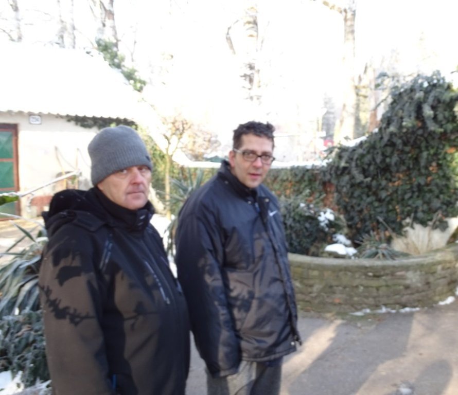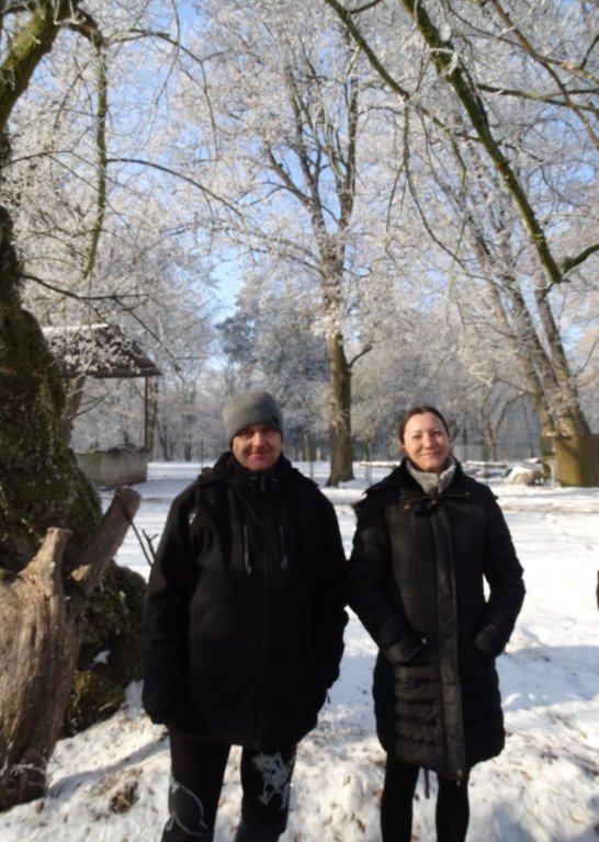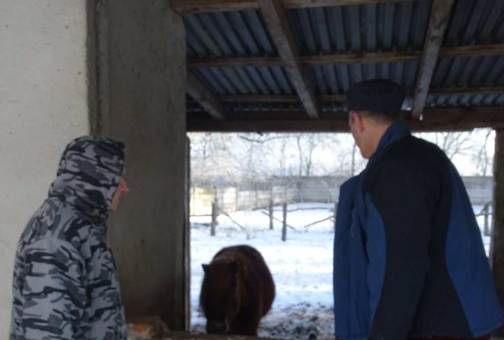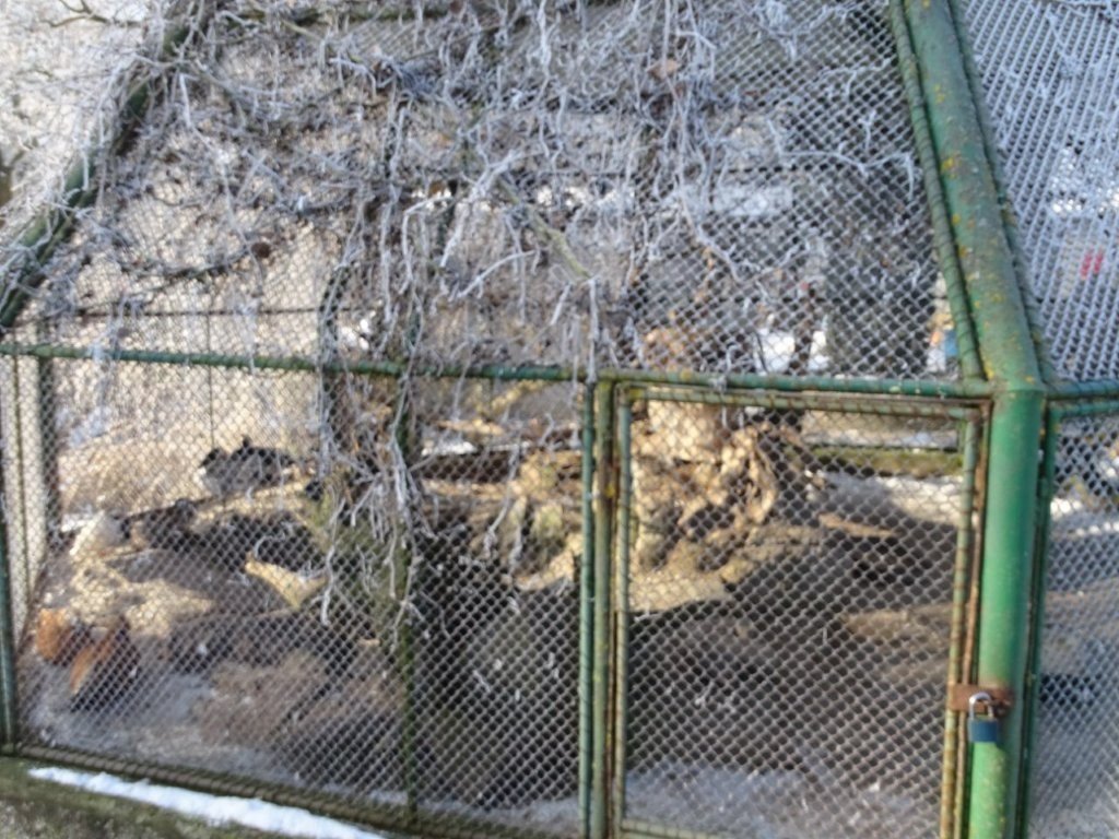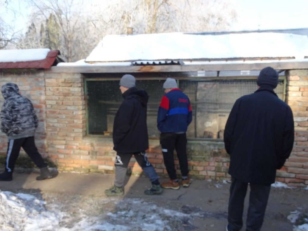 Chodník nás zaviedol až k našej Mini ZOO. Okolité stromy vyzerali ako namaľované – ich konáre zdobili jemné biele čipky inovate. Biely mráz pokrýval kríky aj oplotenie klietok a na strechách domčekov viseli dlhé priesvitné cencúle. Prijímatelia boli nadšení.