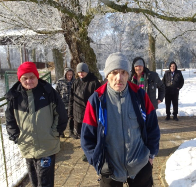 Rok 2026 nám priniesol skutočnú, poctivú zimu. Tento týždeň boli zimné rána trochu iné – obloha nebola zamračená a mohli sme obdivovať nádherný východ slnka. Spolu s prijímateľmi sme sa dohodli, že po raňajkách vyrazíme na malú prechádzku, a každý, kto bude mať chuť, sa môže pridať.